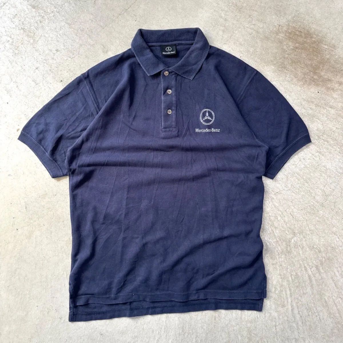 メルセデス・ベンツ 半袖ポロシャツ ボタンダウン 紺 ネイビー ゴルフ シャツ L XL