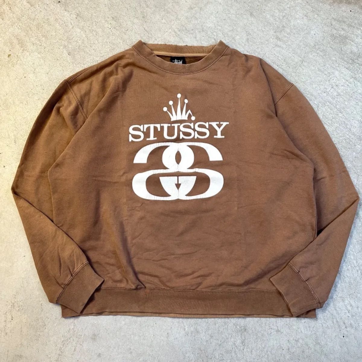 stussy ブラウン フェード 茶色 スウェット sweat 00s Y2K サンフェード L