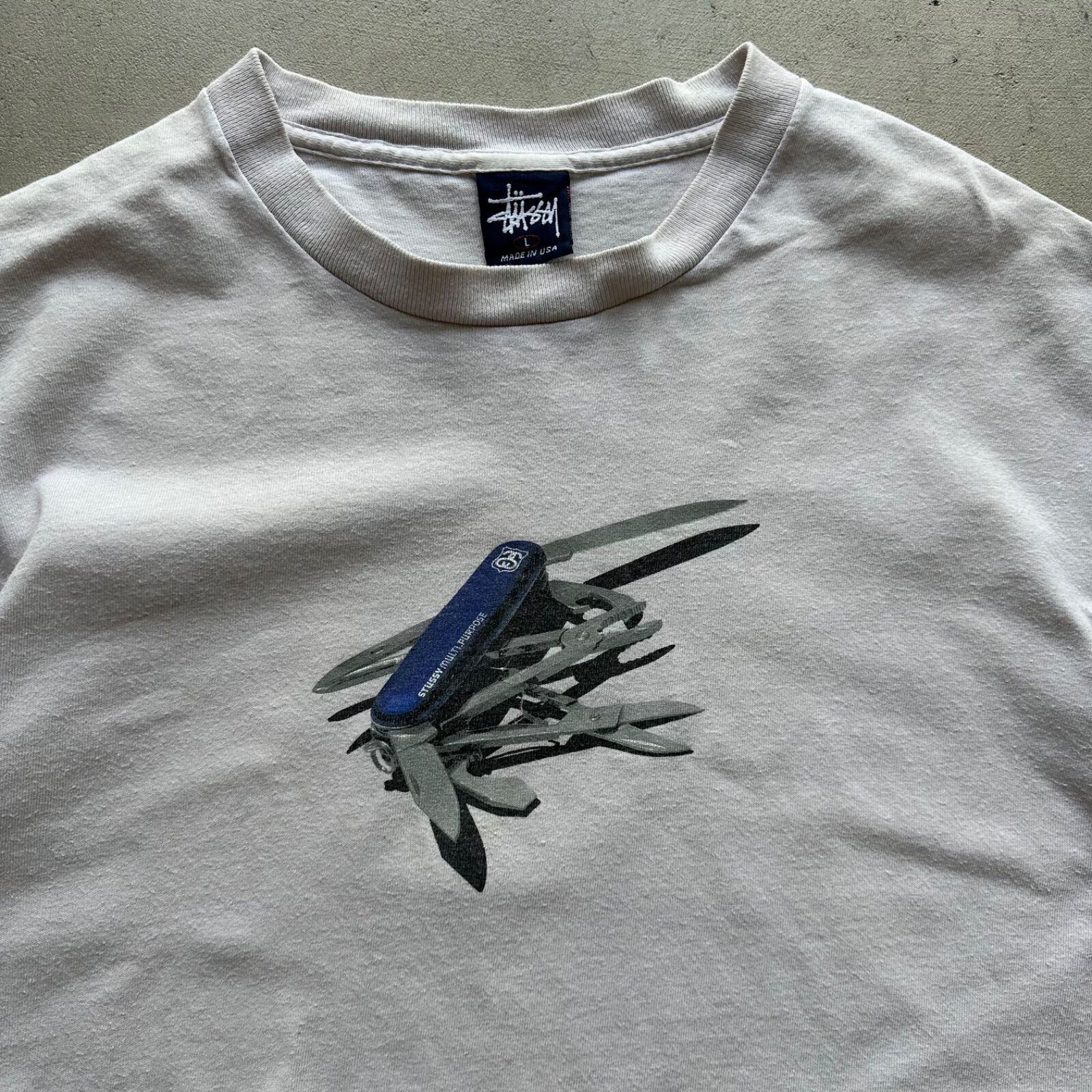 90s OLD STUSSY/ナイフデザイン/L/USA オールド ステューシー シングルステッチ